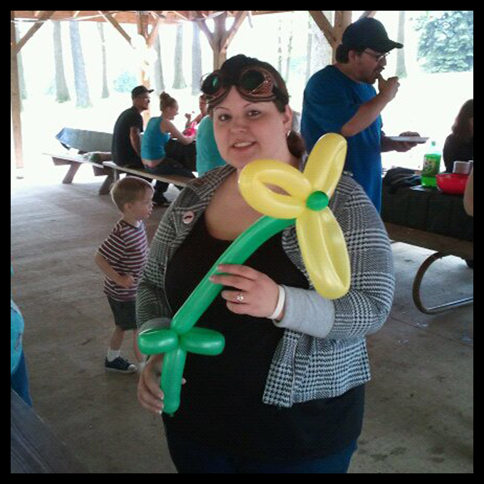 Thank god for Bill’s secret weapon: Jessi. She began twisting the fuck out of green and yellow balloons until they were these perfect, precious daisies. I gave one to Momesis’s daughter and I was sure she was going to faint like Perez Hilton meeting Lady Gaga for the first time. Momesis and I laughed together until I realized that we were having a moment so I walked away.