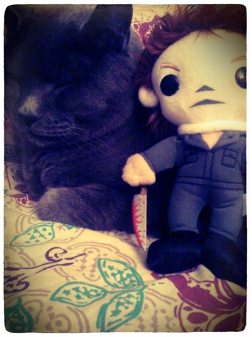 My present was a Michael Myers plushie. Michael is my BOY. I have very strong feelings for him. In fact, back when Henry was “courting” me, he bought me several pieces of Halloween memorabilia until he eventually whittled down my defenses and look at me now. LOOK AT ME NOW.